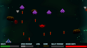 Fight through 9 increasingly difficult levels in this 2D space shooter. Destroy enemy ships, collect power-ups, and survive long enough to reach the final level.